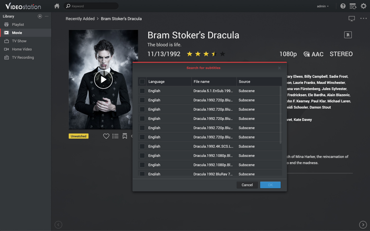 Alternativně mohou uživatelé použít aplikaci Video Station. Pomocí ní mohou doplnit svou vlastní sbírku videí o plakáty, titulky a další podrobnosti, jako jsou popisy, seznamy herců a hodnocení. Můžete si tak vytvořit vlastní osobní knihovnu a vybavit ji rozšířenými filtry pro vyhledávání nebo funkcí doporučených videí. Soubory s videem lze také streamovat na zařízení Apple TV, Android TV, Samsung TV, Google Chromecast, Amazon Fire TV, DLNA zařízení, počítače nebo chytré telefony pomocí aplikace DTV Control ve Video Station. Další podrobnosti najdete zde.