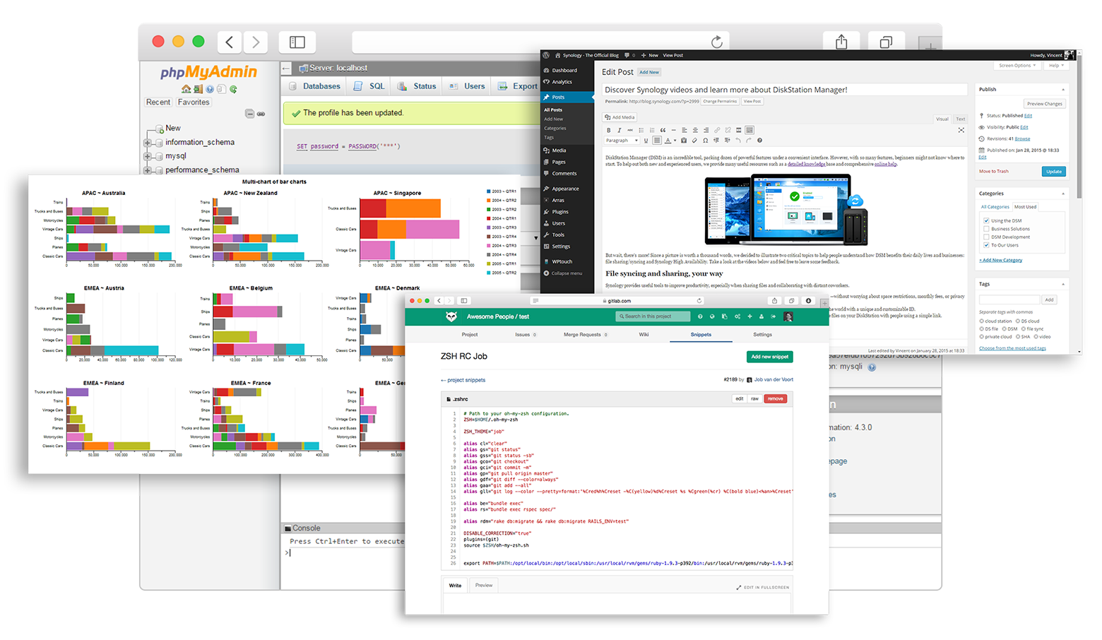 Uživatele, kteří si chtějí vyzkoušet vývoj softwaru, mohou zajímat vývojové platformy, jako je Ruby on Rails nebo Node.js. Ty lze také nainstalovat na zařízení Synology NAS prostřednictvím kontejnerů Docker. Například Ruby on Rails je populární framework pro vytváření webových aplikací založený na programovacím jazyce Ruby. Pomocí těchto platforem lze software vyvíjet a testovat přímo na zařízení Synology NAS před jeho přenesením do skutečného systému.
