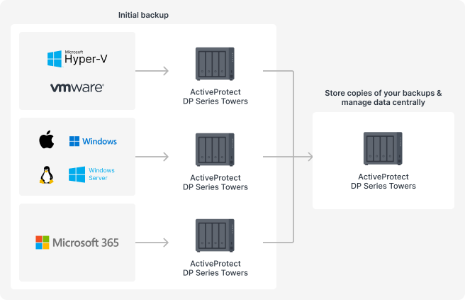 In this case, ActiveProtect DP Series Towers can be deployed on-site as a real-time backup server, storing data locally while backups are regularly replicated to the cloud. At the same time, businesses can unify their backup management across sites via an ActiveProtect DP Series Tower or rackmount server and set up role-based access controls.