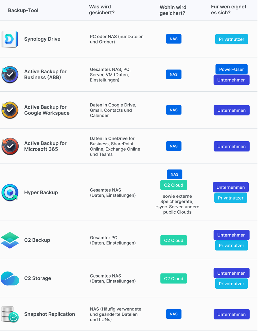 3. Welche Backup-Lösungen von Synology sind für wen geeignet?
